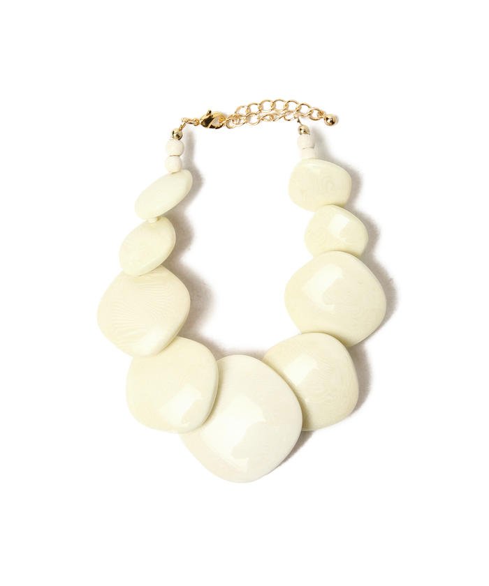 センターに向かって粒が大きくなるようにモチーフを連ねた、ボリューミーなブレスレット。 存在感のある大きさながら、ミルキーホワイトのナチュラルな質感がさりげなく手元を飾ります。