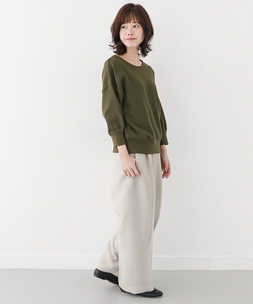 ワッフル目の粗いメンズライクな素材を使って、フォルムと細部のシルエットを女性らしく仕上げた1枚。ネックライン・袖口・裾の端のロック始末やスリット、前後差を持たせた着丈の設定など細かなディテールがシンプルなのにオシャレでこなれた印象をもたらしてくれます。お袖のボリューム感とゆるっとしたドルマン感もポイント◎ インナーでもアウトでも使える春に欠かせない優秀な1枚。何色か揃えておきたくなるような活躍必至アイテムです。