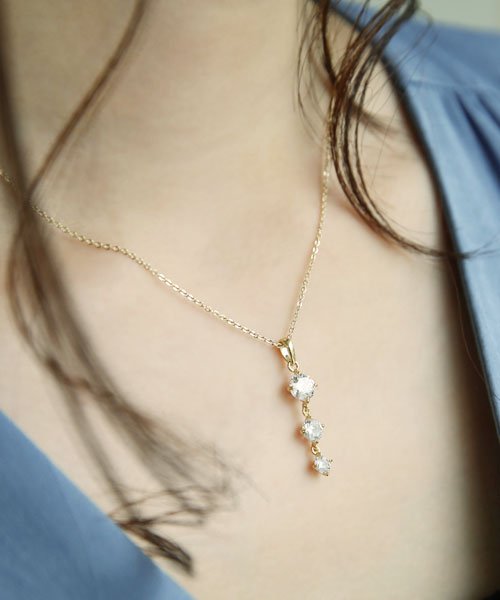 デイリーに、フォーマルに。様々なシーンで大活躍するシンプルなトリロジーストーンネックレスが登場しました。サイズの異なるストーンが胸元で輝き、デコルテ周りを明るく美しく飾ります。一見派手に思われがちの3連デザインですが、サイズ感にこだわり、絶妙な存在感に仕上げました。上品で洗練された印象を与えるネックレスは季節やシーンにとらわれることなく、長い間ご愛用いただける優秀アイテムですよ。