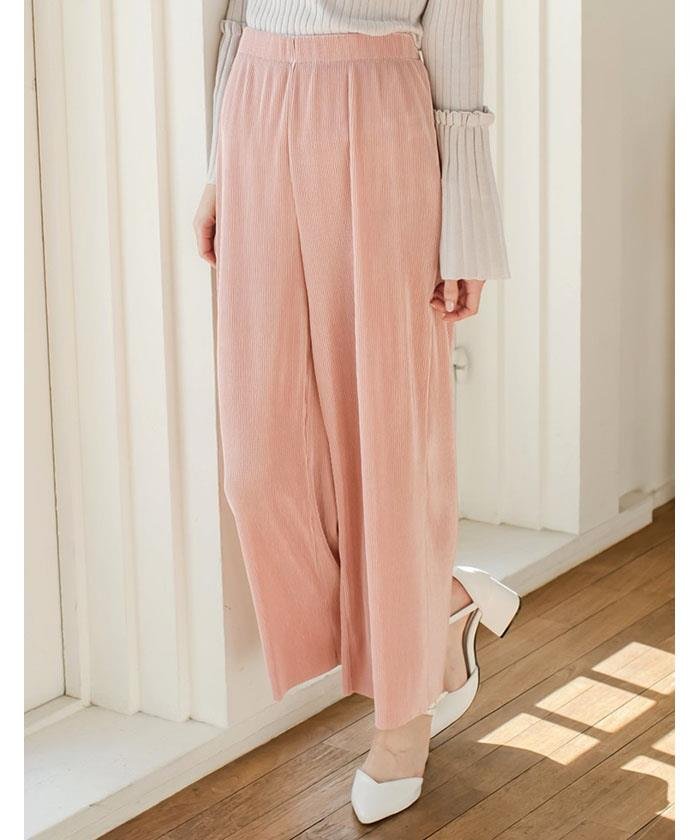動くたびに揺れる、繊細なプリーツデザインが上品なワイドパンツ。