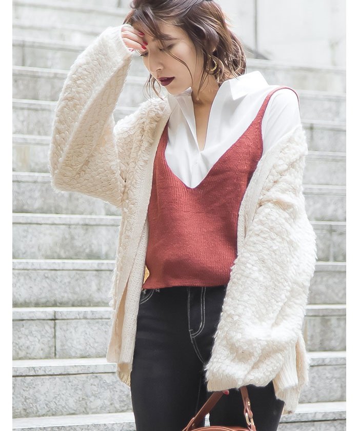 独特なボリューム感を持つループニットで、愛らしく仕上げたカーディガン。
