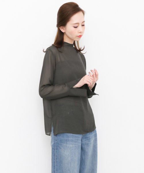 春にピッタリなシアー素材で仕上げたブラウス。程良い透け感と、柔らかな風合いが魅力的ですよ。ハイネックはコーデのアクセントになり、大人っぽさも引き立ててくれる。シンプルなデザインがスタイリングの幅を広げてくれるので、サラッと着るのはもちろん、キャミワンピやオールインワンのインナーとしても大活躍間違いなし◎